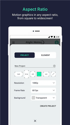 2、然后我们选择创建一个项目,设置项目名称、宽高比例、分辨率、帧速率、背景颜色;