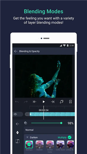 多层叠加与混合模式:支持多层视频叠加,并可通过调整透明度和混合模式实现复杂的视觉效果。