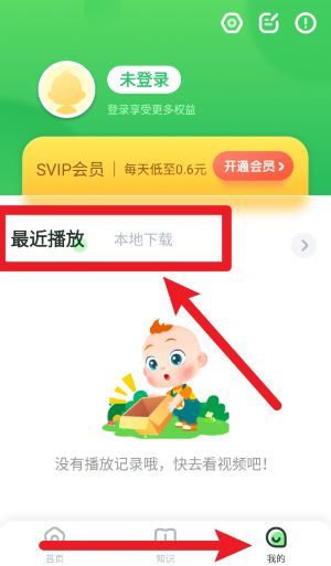 5、点击右下角我的按钮,可查看最近播放记录、下载内容及开通SVIP等个性化服务。