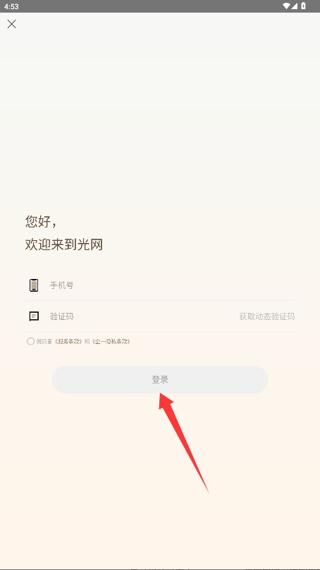 3、填写手机号获取短信验证码,勾选服务条款后点击登录完成一键注册流程。