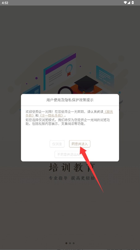 1、初次使用需阅读用户服务协议与隐私政策,确认后点击同意并进入选项进入应用。