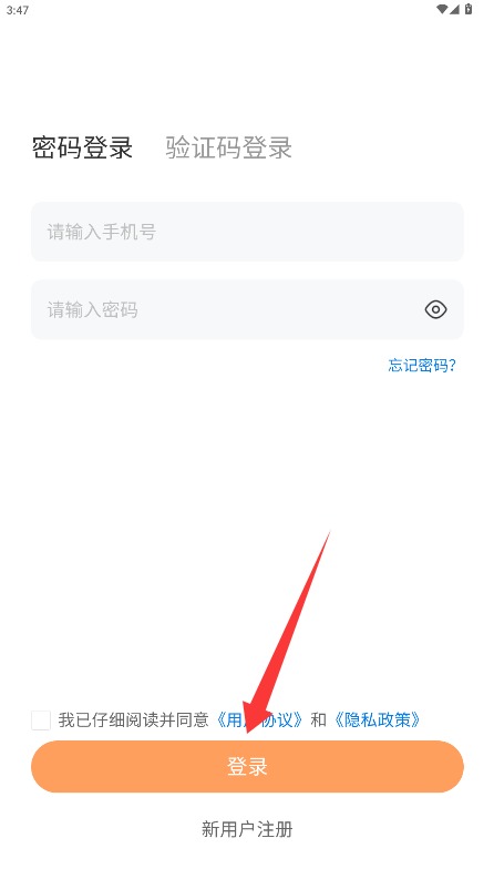 4、返回登录界面输入刚注册的账号密码,阅读并同意条款后即可成功登录系统。