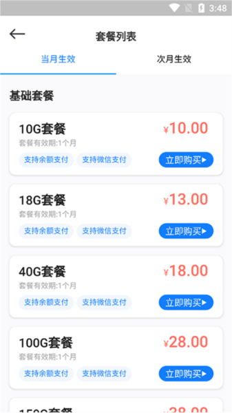 通过软件即可让你在线对手机流量套餐进行购买,获取丰富的流量进行使用