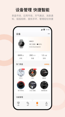 3、点击设备,用户可以自定义添加设备,同时还有天气推送、消息、闹钟、健康提醒等等设置。