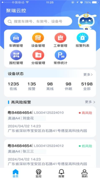 实时定位:聚瑞云控软件实时更新车辆位置信息,方便用户随时随地查看。