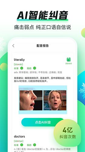 3、智能纠音,配音报告,一键解读,定位弱点,提高发音;