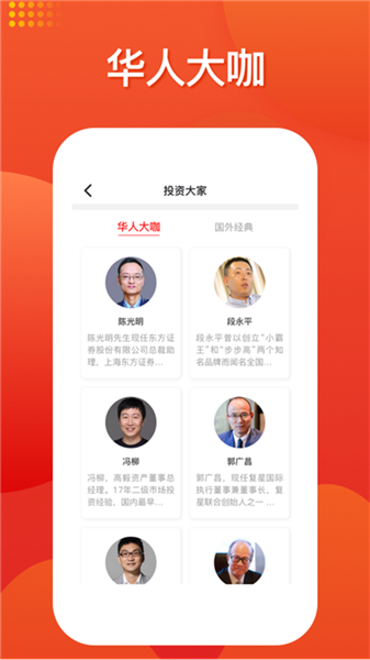 软件汇聚了超多的投资大咖,让你可以跟着投资大咖一起学习。