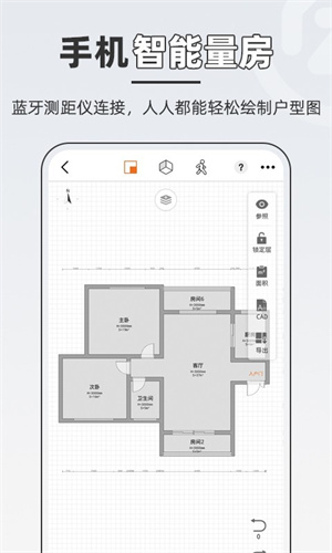 1、通过测距仪的蓝牙链接,实现了实时数据传输和无误差量房,提供精准的3D户型图。
