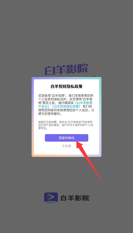 1、初次打开APP需完整阅读用户协议与隐私政策,点击同意并继续进入登录界面。
