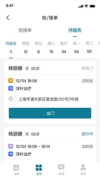 2、 订单接受,护士确认服务可提供后,确认接受服务订单。