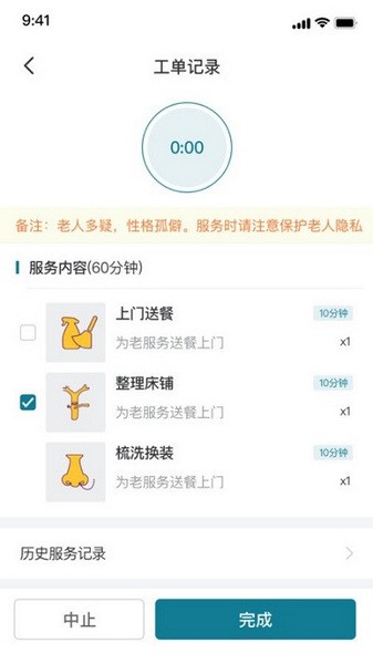 5、 查看历史,护士能够查看全部服务历史记录信息。