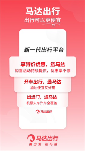 马达出行app是一款一站式出行服务平台,为你整合全品类出行方案,让省钱与省心双向奔赴。覆盖租车、顺风车、车主服务、机票、火车票、加油等多元出行场景,无需在多个 APP 间反复切换,一个平台就能搞定所有出行需求。告别繁琐比价,平台专属优惠玩法层出不穷,特价机票低至 1 折起,海量优惠券免费领,每一次出行都能省下真金白银,轻松降低出行成本。