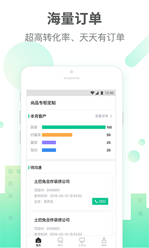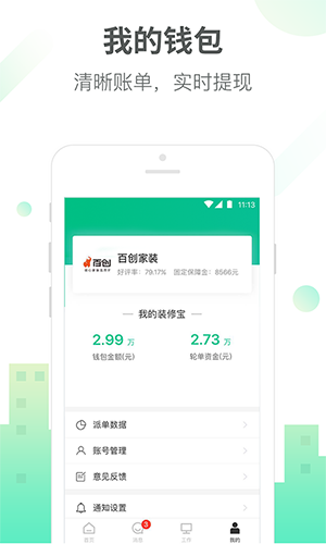土巴兔商家版APP是一款由彬讯科技发行的专门为平台商户打造的移动工具,该软件为提高行业效率而努力,不仅提升效率,更是提升业绩。深耕互联网装修为中国家庭提供一站式装修解决方案,为平台商户输送更多能力、提高整体行业效率。有了该软件,用户们再也不拍吃亏和麻烦了,这里给你一站式的装修服务。软件随时为商家推送消息通知进行提醒,包括项目发布、接单消息、待办提醒等,让你不错过任何一个机会;随时可以查看派单详情,了解业主信息和接单时间,在线可以进行派客服、派设计师、发送短信、拨打电话、补充地址等,同时用户可以添加预约量房的进度,方便公司负责人了解该业主的情况;同时为你显示了钱包金额和轮单资金,随时可以将钱包金额进行提现。感兴趣的用户快去下载吧!