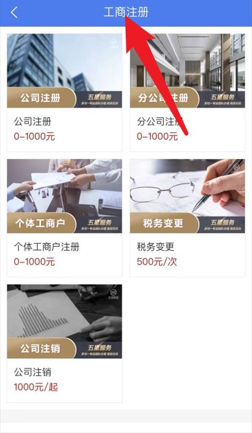 3、工商注册模块展示各类注册服务项目,明确费用范围,便于用户按需选择办理事项。