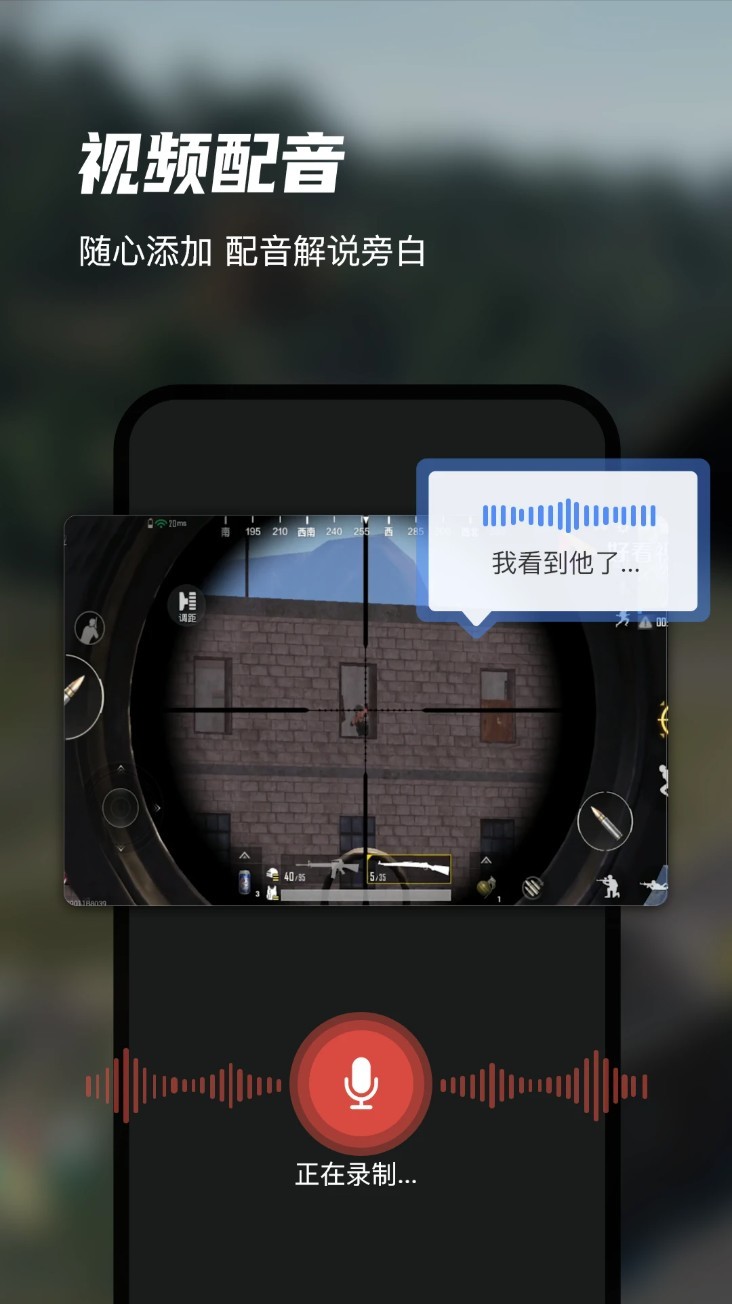 3、实时语音配音:可手动添加语音配音,适合制作讲解、攻略类内容,录音同步无延迟。