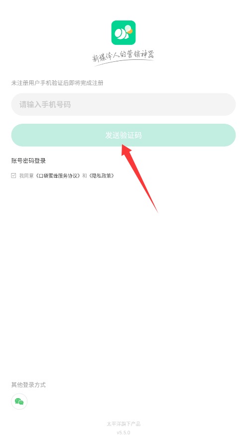 2、输入手机号码获取验证短信,填写验证码并勾选用户协议,点击登录完成身份验证。