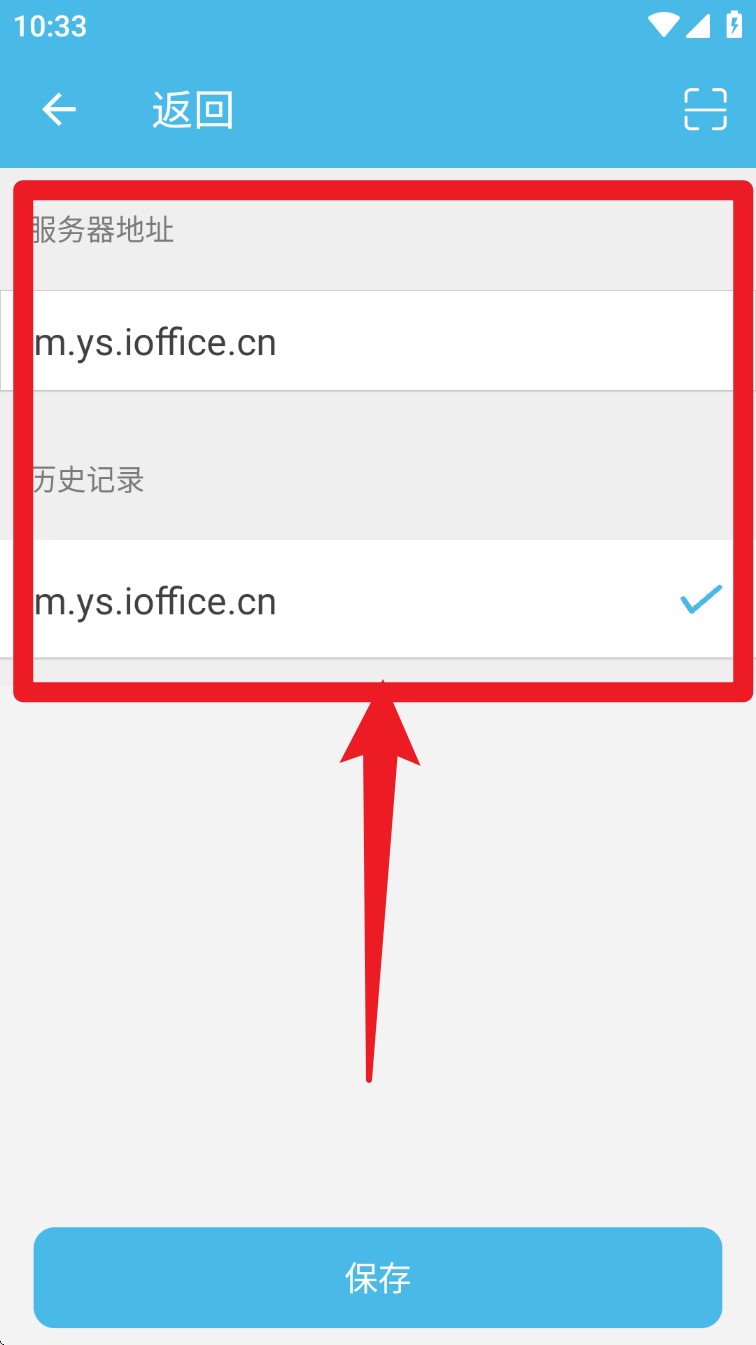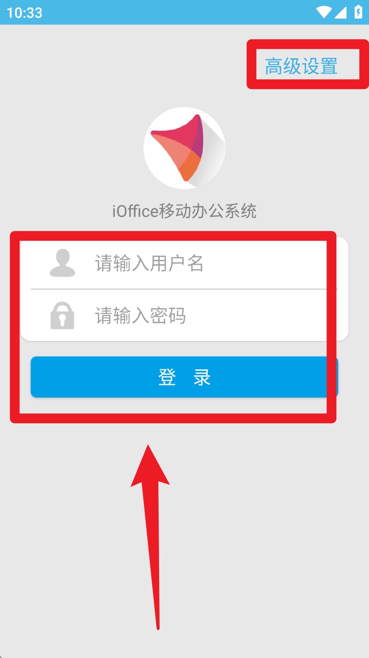 2. 若首次使用需配置服务器地址,点击右上角高级设置输入地址后点击保存。