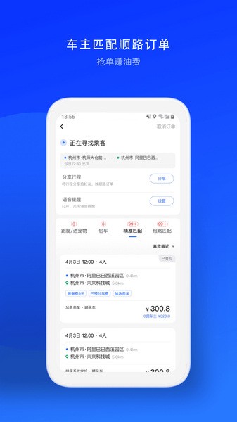【匹配订单】发布路线、时间,匹配更加精准的顺路订单