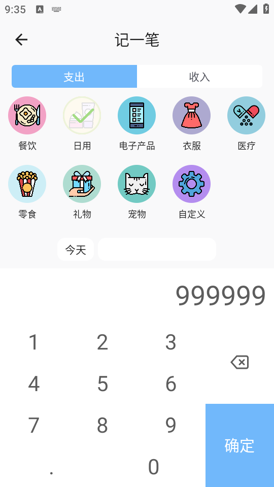 2、你可以选择记账类型和输入金额;