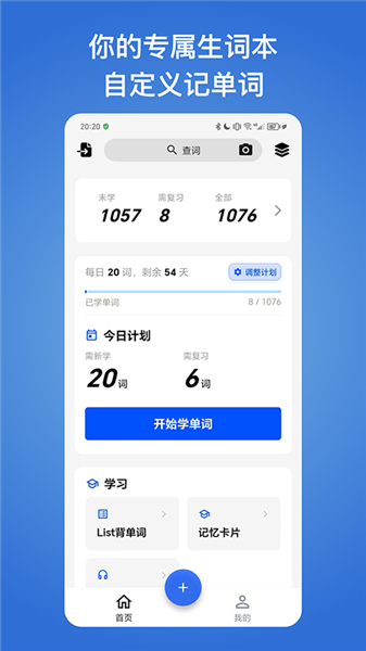 「今日计划」:可以自行调整每日学习计划,合理安排每一天的学习计划。