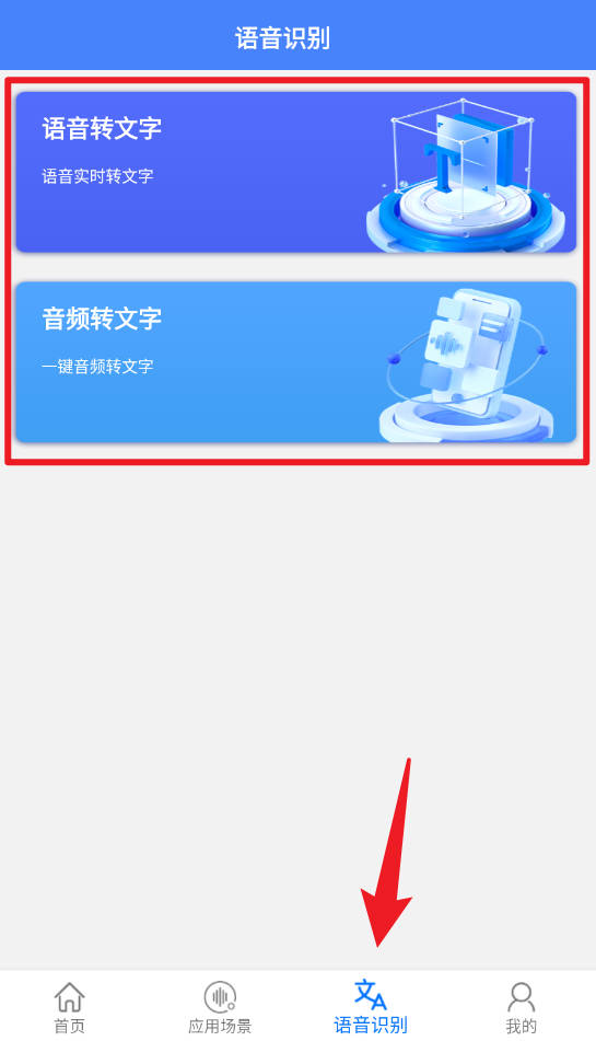 4、语音识别页面提供语音实时转文字和音频转文字功能,帮助用户将语音内容快速转换成文字,提高记录和处理信息的效率。