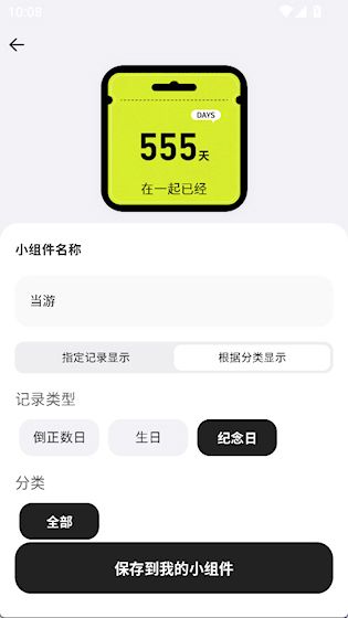 4、设置好要显示的类型和分类后保存,在桌面进行添加