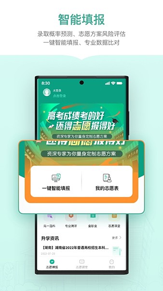 录取概率预测、志愿方案风险评估、一键智能填报、专业数据比对等超级实用功能。