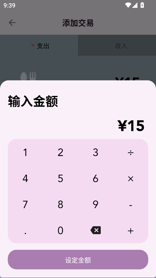 4、输入金额,点击设定金额,然后添加交易