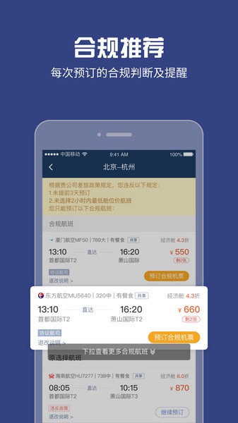 3、费用管控:系统严格执行差旅标准,智能推荐低价机票、酒店。