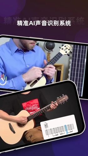 依旧采用声音识别技术来判断弹奏正误,除了支持识别扫弦,还加入了识别分解、单音指弹、双音指弹等更多尤克里里弹奏技巧,保证你学习过程中的每一步都能及时得到反馈。
