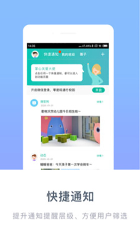 2、班级通知:全面取代纸张,短信及口述,免费发布图文公告,家长实时接收。