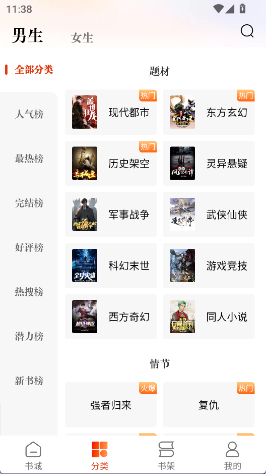 1、书城中提供了不同的频道、榜单,可以快速找到感兴趣的作品