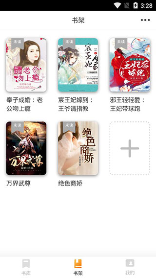 2、在书架中点击添加就可以自动进入书城去选小说,找到小说添加到书架就可以直接阅读了。