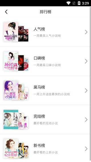 3、在排行榜单中可以查看各大人气榜、口碑榜、黑马榜等小说榜单,帮你快速找好看的小说。