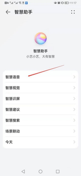 3、点击“智慧助手”进入下一级界面,定位到“智慧语音”功能。