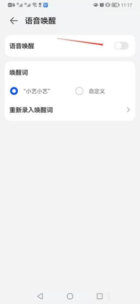 三、将“语音唤醒”功能开关打开。