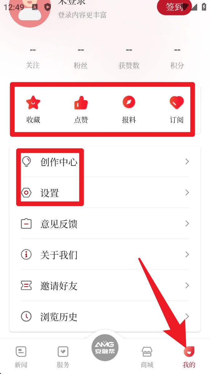 4. 前往我的页面后,可查看收藏、点赞、报料记录,还能进入创作中心与设置,管理个人信息与使用偏好。