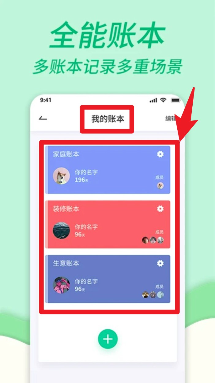 2. 成功登录后,点击我的账本页面,即可创建或管理多个独立账本,支持区分家庭、装修、生意等多种记账场景。