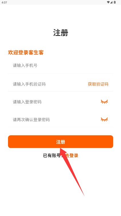 3、按要求输入手机号获取短信验证码,设置安全密码并二次确认后提交注册。