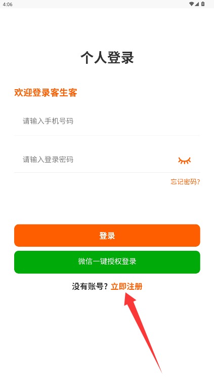 2、在登录页面点击立即注册按钮,即可跳转至账号创建界面开始信息填写。