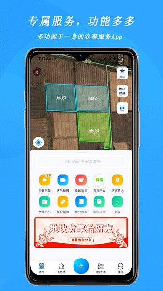 5、测亩宝可分享地块列表,让你的亲戚朋友都知道这是你的土地;