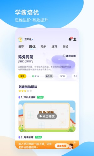 学酱的研究型“人文”产品团队,研究教育心理学揭示的小学生认知特点,仔细分析小学阶段孩子面对的任务,打造高效培优、趣味数学、优学题库、同步课堂、模拟测试五大功能模块,激发兴趣、鼓励互动、强化成就,辅助孩子达成并保持“学霸”段位。