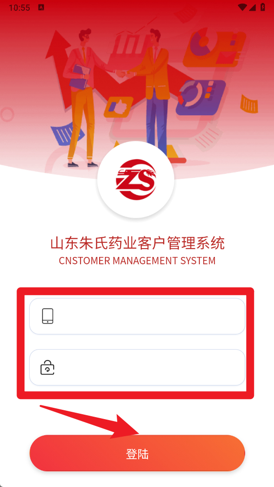 1、登录界面输入手机号和密码后点击登陆按钮,即可进入朱氏药业CRM系统,轻松开启智能化办公管理。