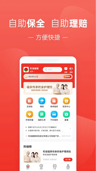 4、支持保单查询、保全续期、线上理赔、健康管理等服务,自助投保,随时享受健康服务;