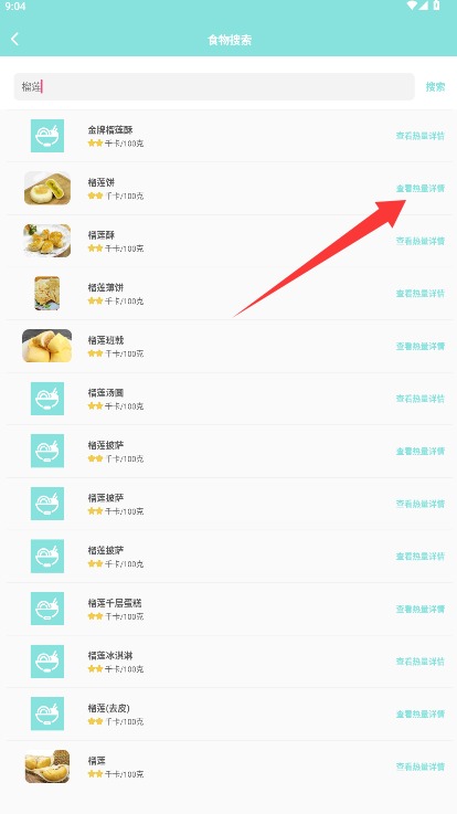 3、从搜索结果列表中选择目标食物,点击查看详细的热量及营养成分信息。