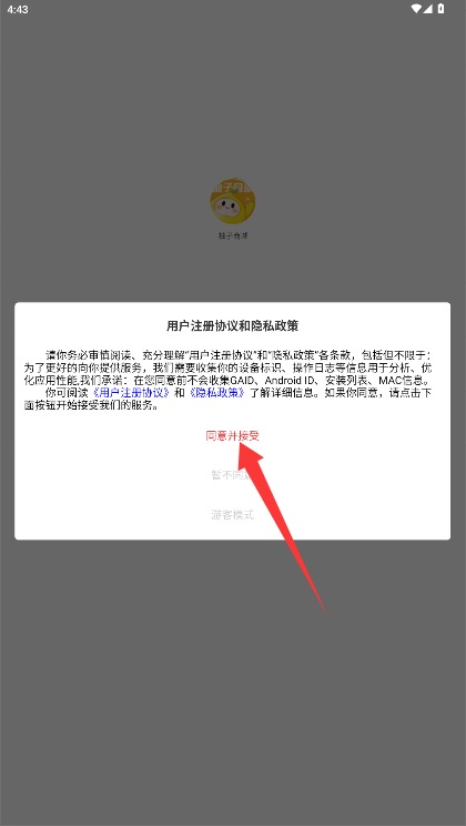 1、初次使用需阅读平台服务条款与隐私政策,确认后点击同意并接受进入登录界面。
