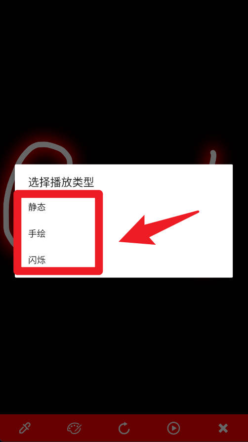5、在播放模式选择窗口中,可以选择静态、手绘或闪烁等不同的播放方式,满足不同场景下的展示需求。