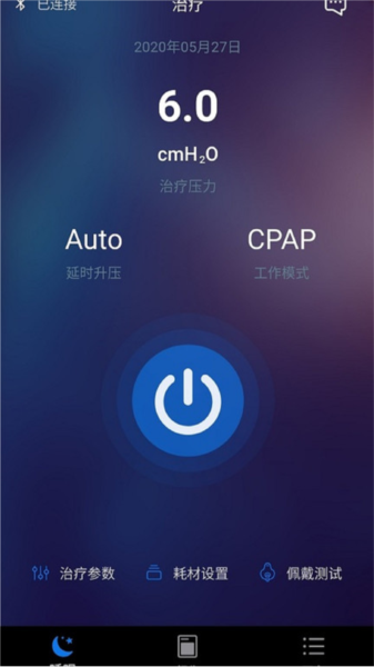 - 绑定呼吸机,软件可以绑定用户呼吸机,下次打开自动加载设置,方便快捷。