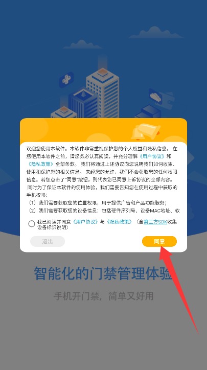 1、初次使用需阅读平台服务条款与隐私政策,确认后点击同意选项进入主界面。