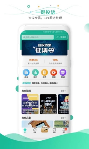 消费保APP是一款主打消费者维权举报的软件,界面简洁清爽,功能丰富强大,通过互联网、大数据技术,为广大群众提供一个良好的曝光平台,打击不良商家的违规操作!在这里消费者可以通过掌握的有力证据发起投诉,将有资深专员为你1对1跟进,至今已为消费者挽回3亿+金额!同时平台汇集100+头部企业,消费者可以随心查询口碑及售后,让你更安心!此外软件还搭配了视频专栏及热点文章,为你带来海量精彩内容,赶紧下载体验吧!